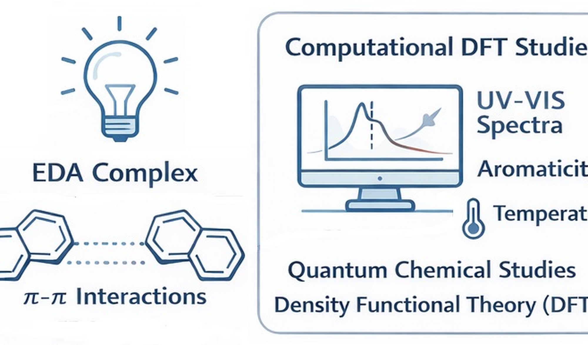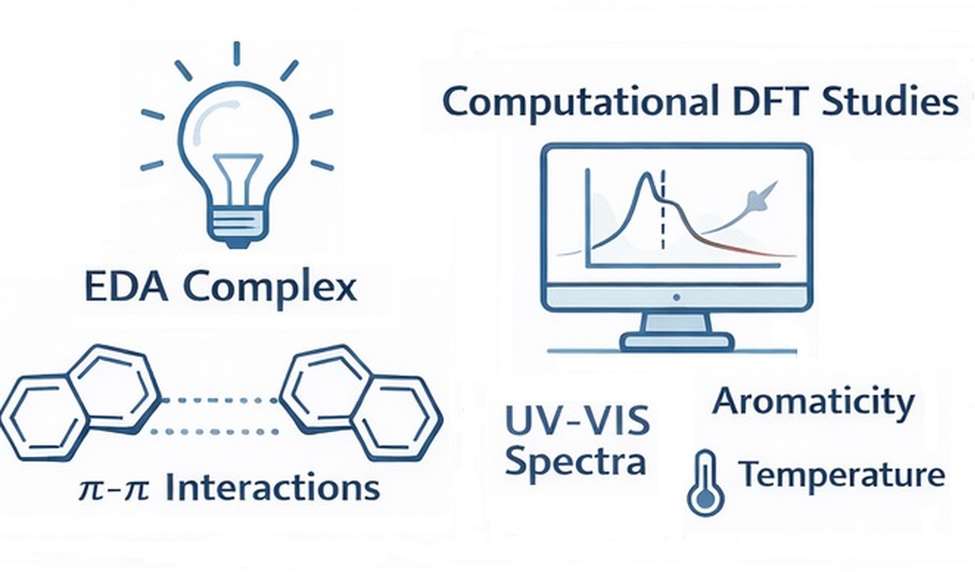 Upon irradiation with light of an appropriate wavelength, these catalysts can also enable the photoactivation of electron donor–acceptor (EDA) complexes.[2] In such systems, noncovalent interactions—particularly π–π interactions—play a crucial role. Significant electronic redistribution occurs upon EDA complex formation relative to the isolated components, as well as during the excitation process. These effects often manifest as non-negligible redshifts in the UV–Vis spectra and substantial changes in electronic properties, e.g. aromaticity. Temperature may also play a relevant role in modulating these phenomena.